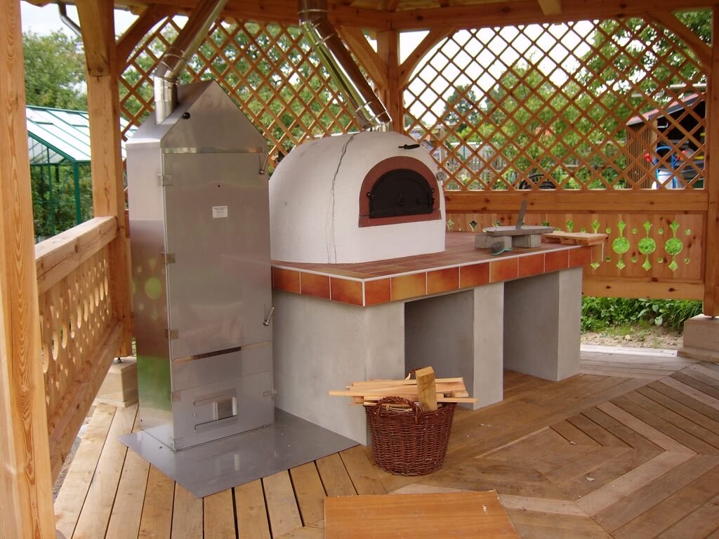 Einen Kamin auf der Terrasse heizt man ein und er hat einen Rost. Man kann darauf braten oder auch einen Fisch zubereiten.